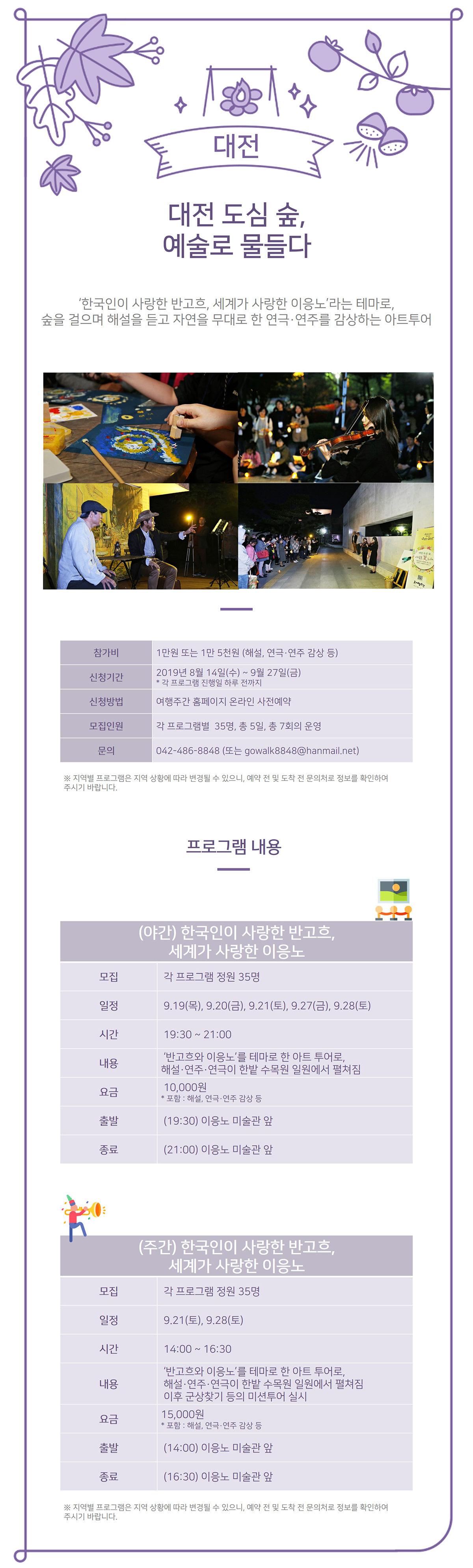 ▶ 참가비 : 1만원 또는 1만5천원 (해설, 연극, 연주 감상 등)