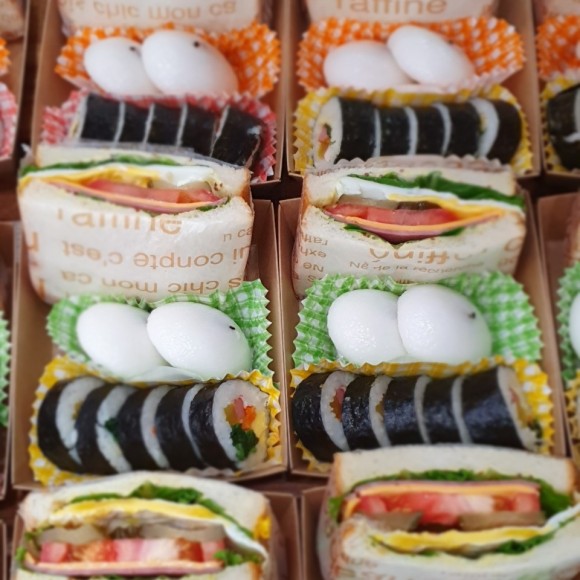 샌드위치 떡 김밥 유부초밥 마들렌 브라우니 과일 음료 중 선택